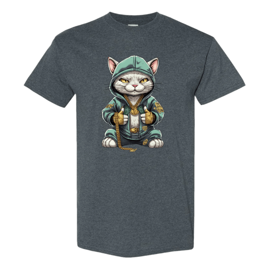 Swaggy Cat: Cartoon Cat with Green Hoodie, Gold Bling, and Stacks of Cash