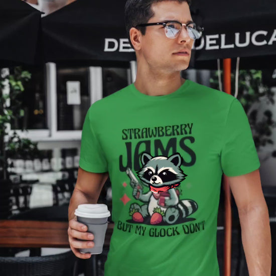 "Strawberry Jams, Glock Don't" - Hilarious Raccoon Graphic T-Shirt